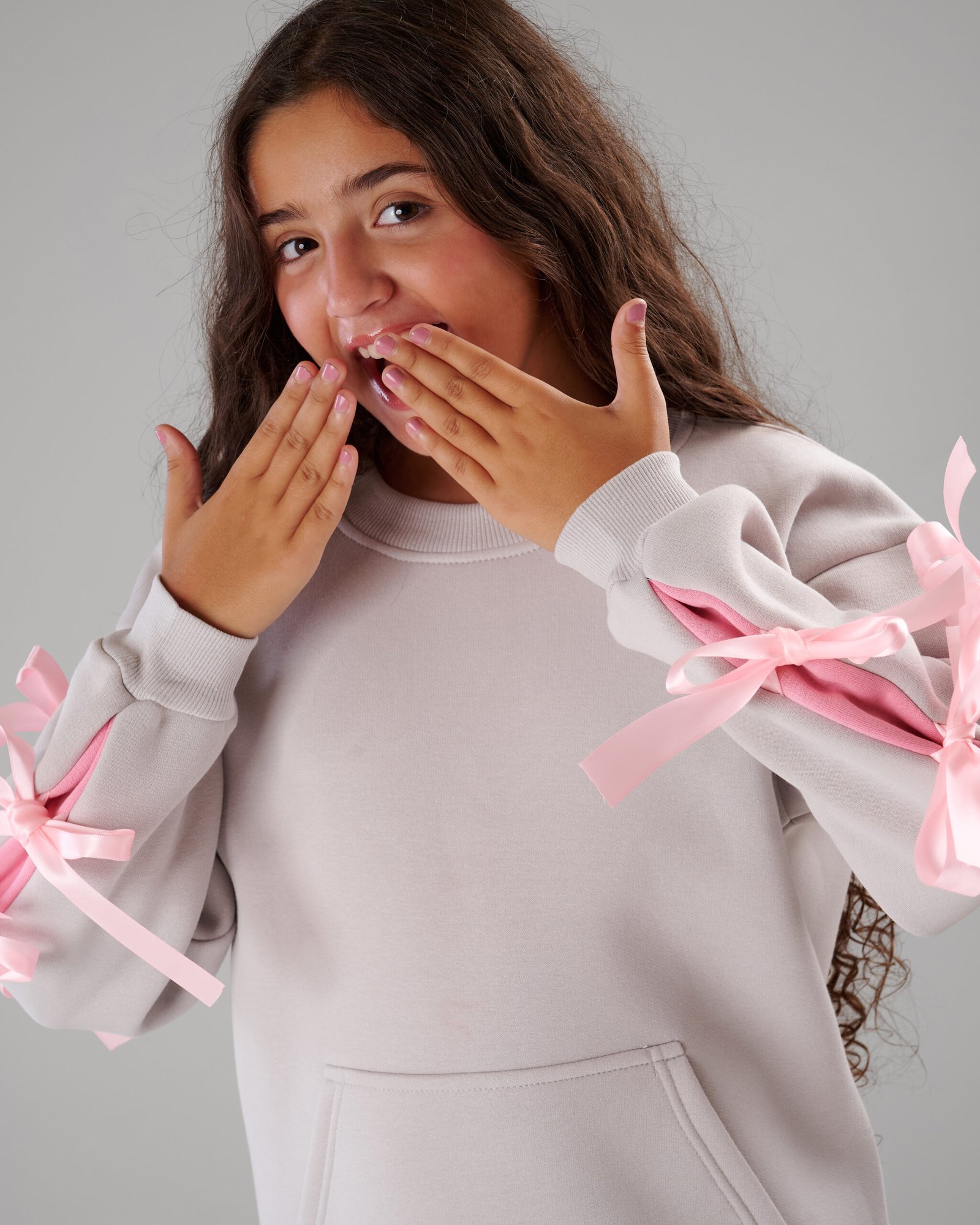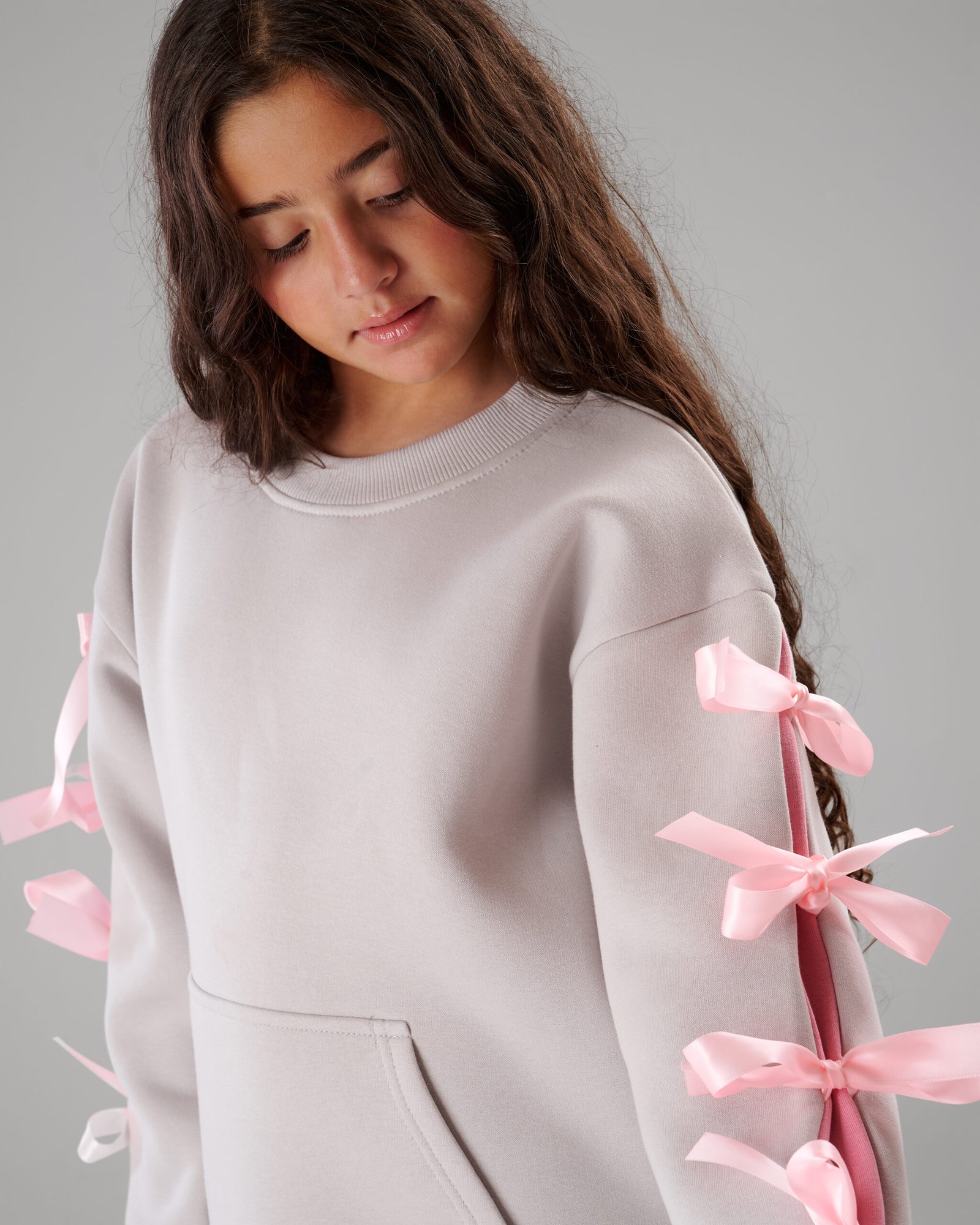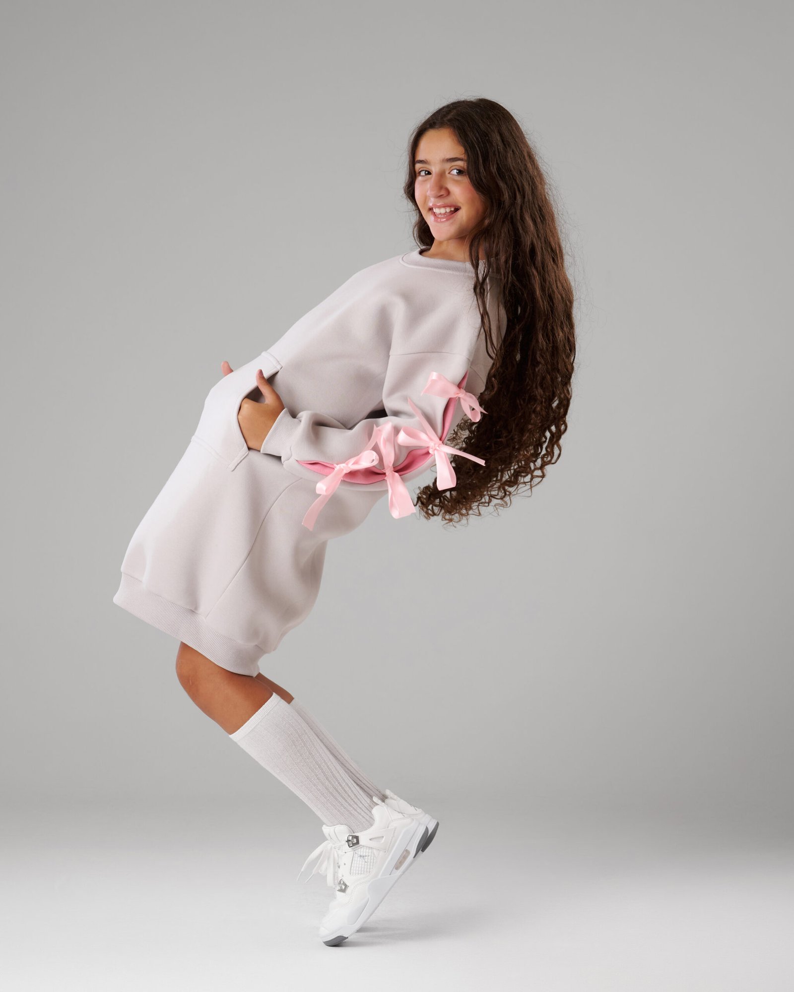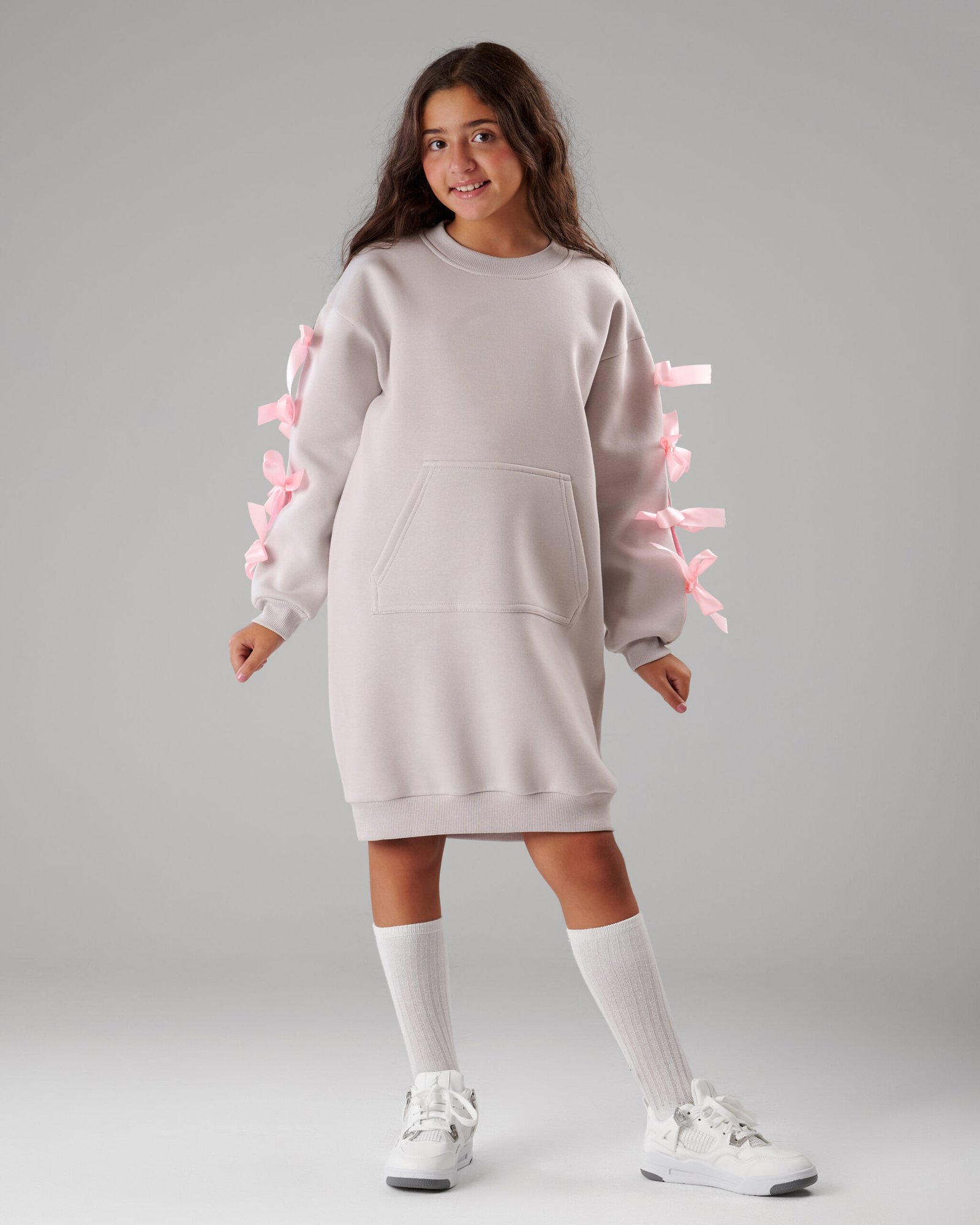 دريس شتوي ميلتون اسفنجي قطن 100% بوبرة داخليه رمادي وشريط بينك من علي الكم
