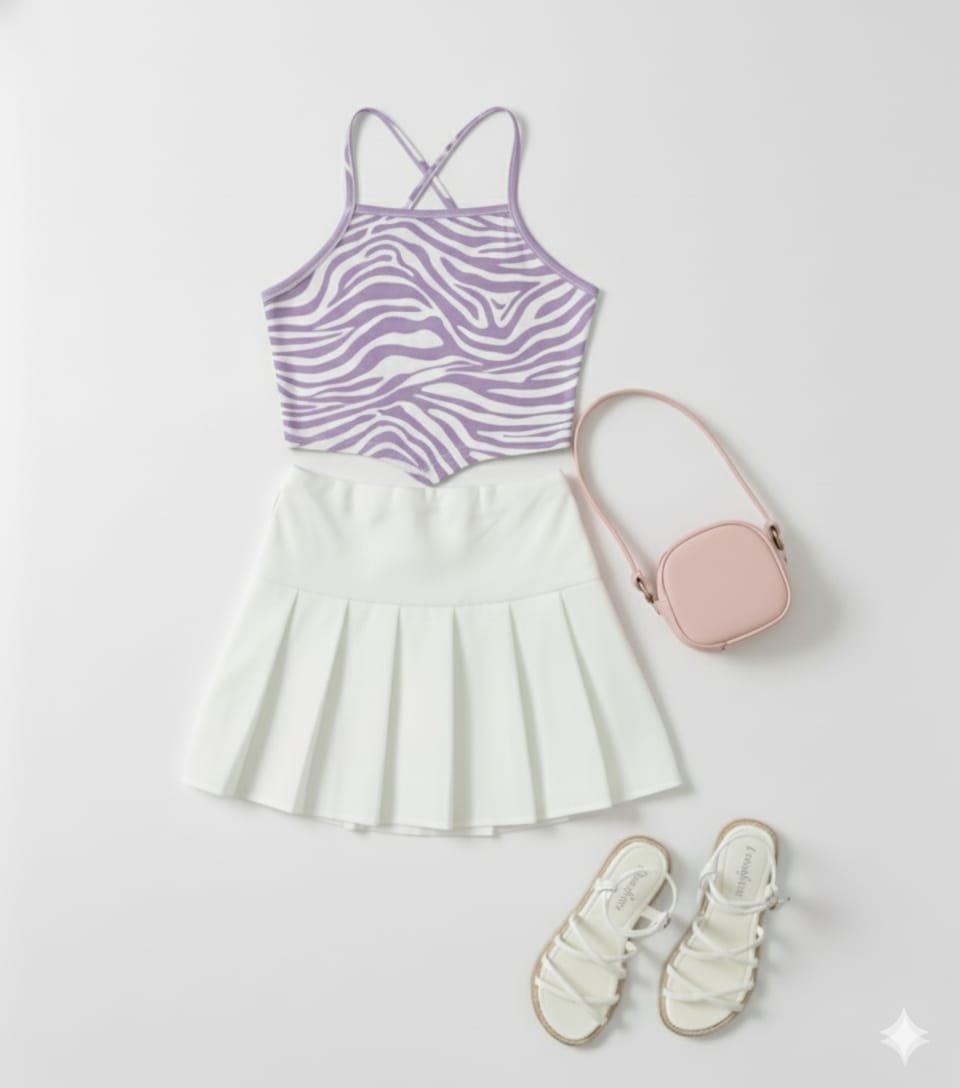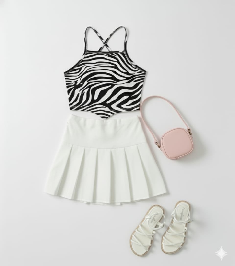 جيب بليسيه أسود خامة روزالين مع توب زيبرا ليكرا